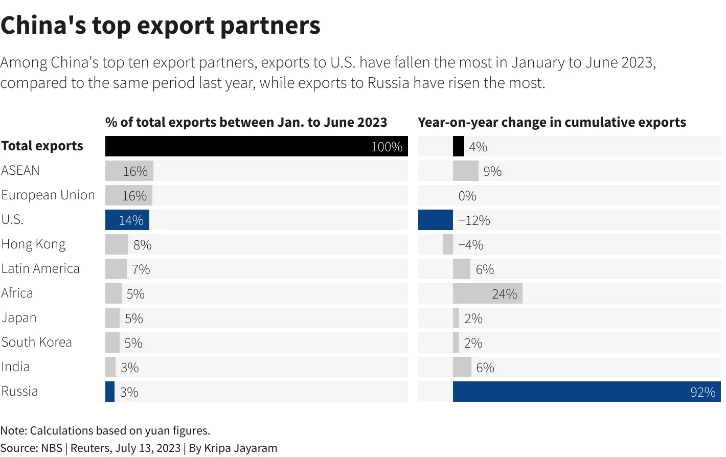 Jos katsot vaikka tästä, niin Venäjä on 3% Kiinan viennistä ja pelkästään EU ja US ovat 30%. Olisi todellinen emämunaus lähteä sotimaan Venäjän rinnalle, kun eihän Kiina siinä mitään voittaisi, kun vienti romahtaisi ja tulisi lama. Päinvastoin, puukottamalla Venäjää selkään Kiina voisi vallata itselleen takaisin haluamansa Amurin alueen ja vaikka jopa Siperian.