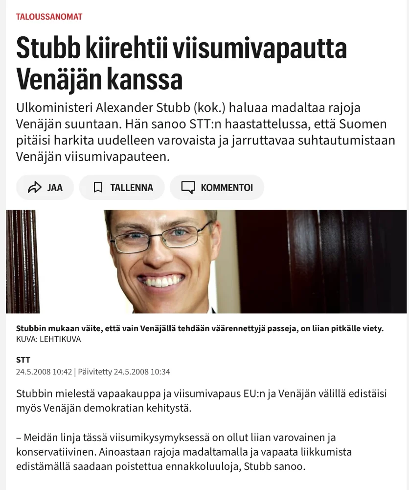 Tarkoitin sitä, että jos Ukrainassa tulee rauha, niin Venäjä tietenkin voi rauhassa varustella armeijan sen jälkeen uudestaan, kun pakotteet poistetaan yms. ja sitten hyökätä Suomeen. Venäläisessä propagandassa puhutaan jo vanhasta-suomesta ja miten se kuuluu Venäjälle.