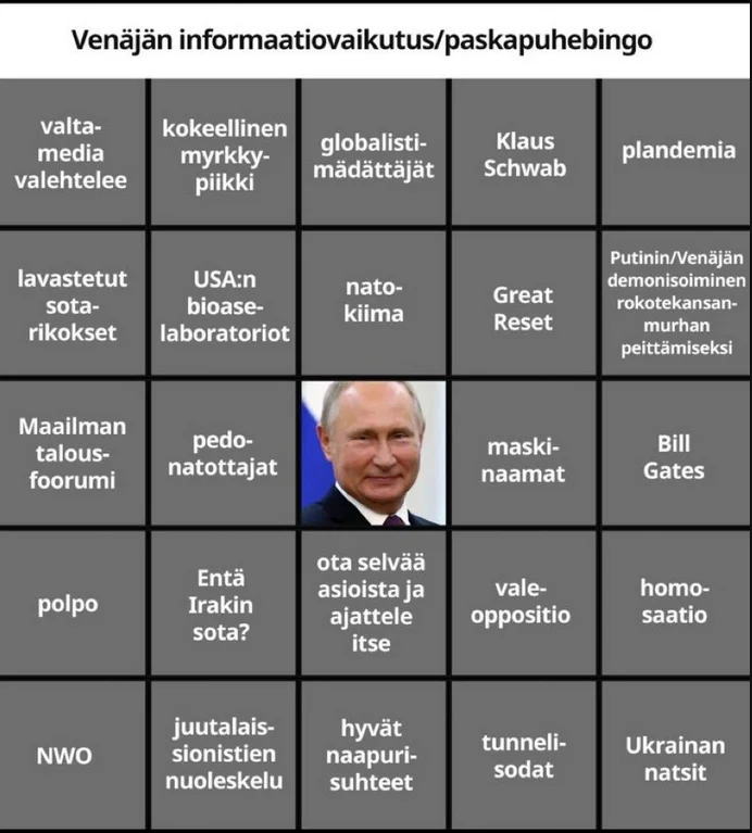 Korona ja Ukrainan sota eivät liity toisiinsa. Mutta jostain syystä yllättävän moni näkee tämän kaiken suurena valheiden verkkona. Kokonaisuus on tietenkin paljon monimutkaisempi kuin kukaan voi ymmärtää.