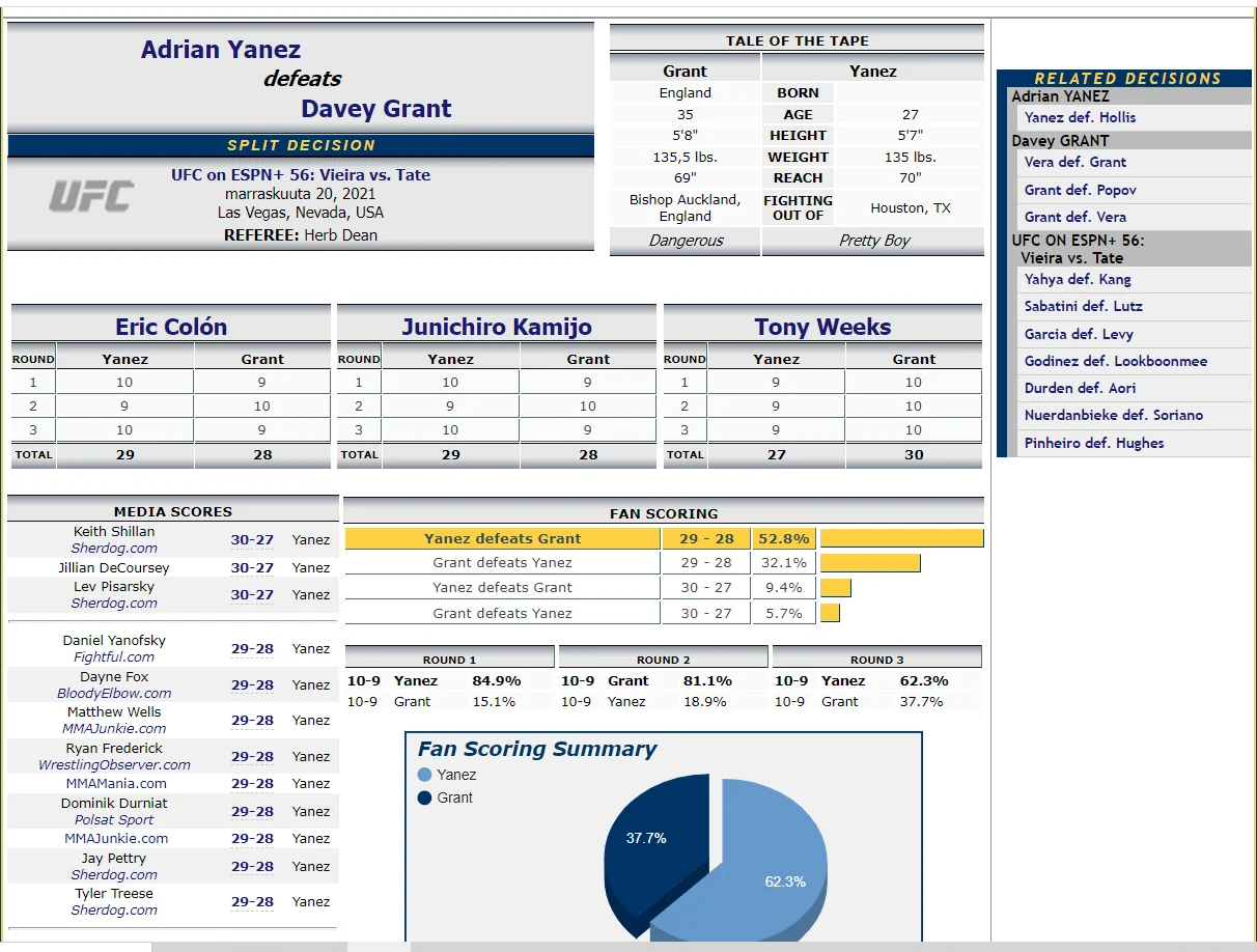 Oon kyllä täysin eri mieltä sun kanssa. Yanez oli yllättynyt kun vastustaja sai yhdeltä tuomarilta 30-27.