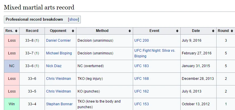 Sivuaa jo Titon UFC - ennätystä(?) voitottomien peräkkäisten ottelujen määrässä. Kuudennella pääsisi tasoihin Huntin Pride-runin kanssa.