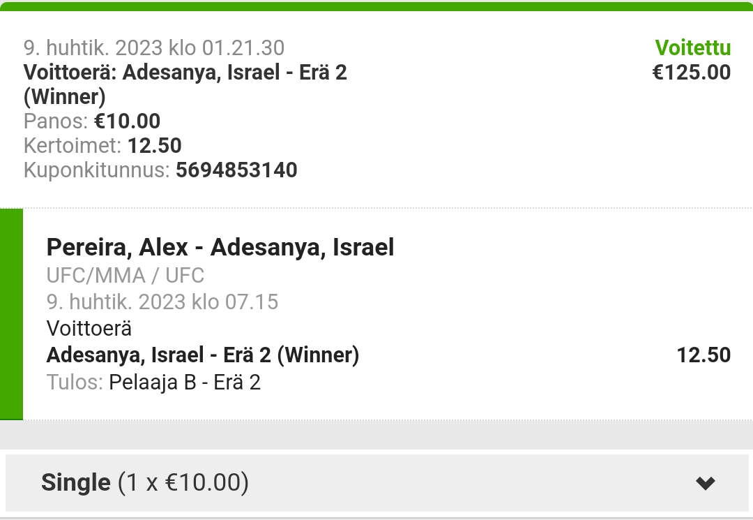 Ei tuolla hirveesti oo ketään tarjolla. Izzy on voittanut suurimman osan top kympistä. Du Plessis ois sijalla 6, mutta ei ehkä ansaitse vielä tittelimatsia. Khamzat ois periaatteesta mielenkiintoinen ja varmaan myis eniten, mutta saapa nyt nähdä. Ja mää vähän luulen että Pereira siirtyy nyt sarjaa ylemmäsOli kyllä arpapeliä. Just heräsin kun päämatsi kuulutettiin. Kuka Adesanyalle next?