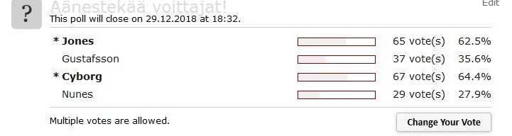 Mä oon tehnyt tän asian kanssa sovinnon. Ufc ja usada on mitä on ja mun itkut netissä ei auta. Sen verran kuitenkin boikotoin etten jonesin ppv:ta osta nyt tai tulevaisuudessa vaikka matsin tulenkin näkemään.