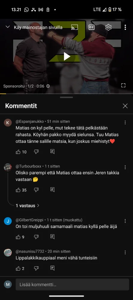 Kaikki vajaat 600 kommenttia käytännössä samalla sisällöllä. En kyllä toisaalta ihmettele, oli aika raskasta kuunneltavaa.