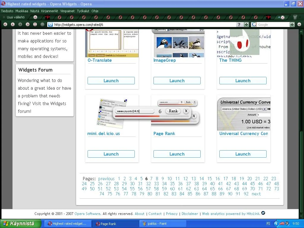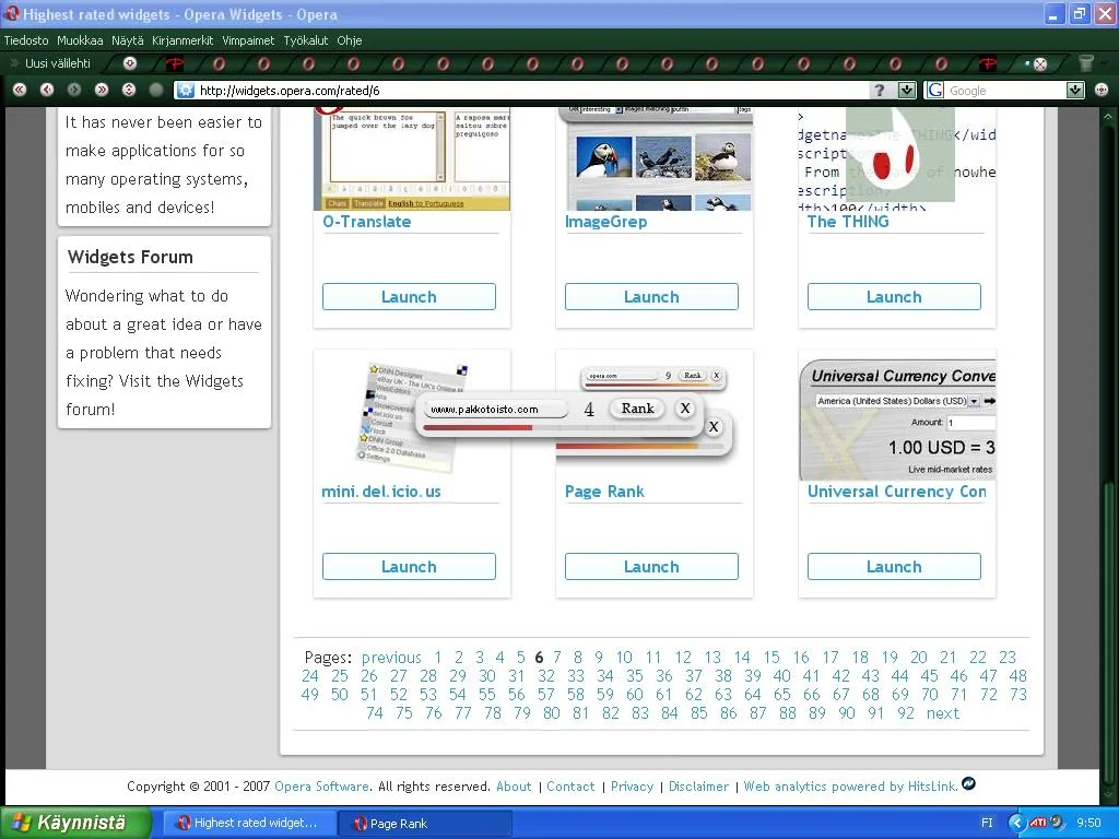Operan Page Rank-widgetin mukaan pakkis on kehnompi kuin Suomi24...