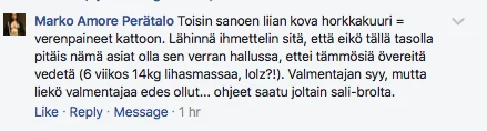 En nyt ota kantaa että kenen syy yms, mutta voisin itsekkin veikata, että kuurista johtui. Liian kova painon nousu lyhyessä ajassa ja ilman kuuria ei olisi onnistunut.