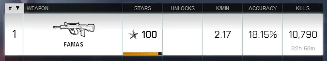 Ylivoimaisesti mun käytetyin ase, seuraavalla aseella vaan reilu 5,000 tappoa.