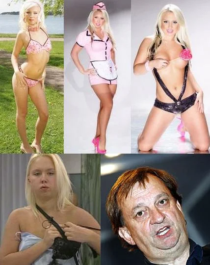 Totta! Pelottavaa olis herätä tollasen vierestä. Vaikka eipä tuo meikissäkään mikään kaunotar ole. Järkyttävä selluliittivatsa ( kuin lähes kaikilla muillakin talossa) ja ei vyötäröä ollenkaan. Nenästä tulee mieleen -onkohan Henna sukua T.A.U.K.K.I lle?