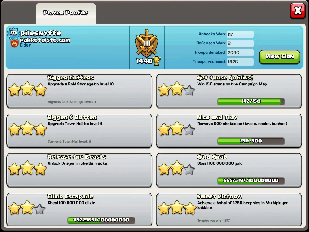 TaSa a.k.a Demize yritit pyrkiä takas ykköseen, klaani on toistaiseksi täynnä aktiivisia. Mee kakkoseen nostaan tasoa![]()