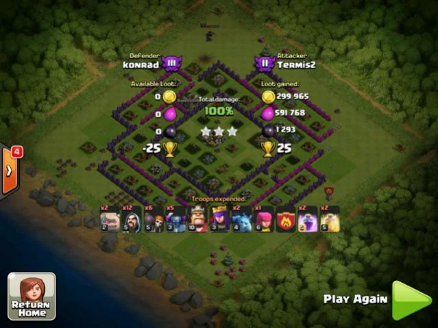 Joukot: 1 Golem, 5 pekkaa, 10 wizardia, 6-8 wall breakeria, 1-3 arsua, 1-3 miniä, herot ja iso Golem CC:ssä.