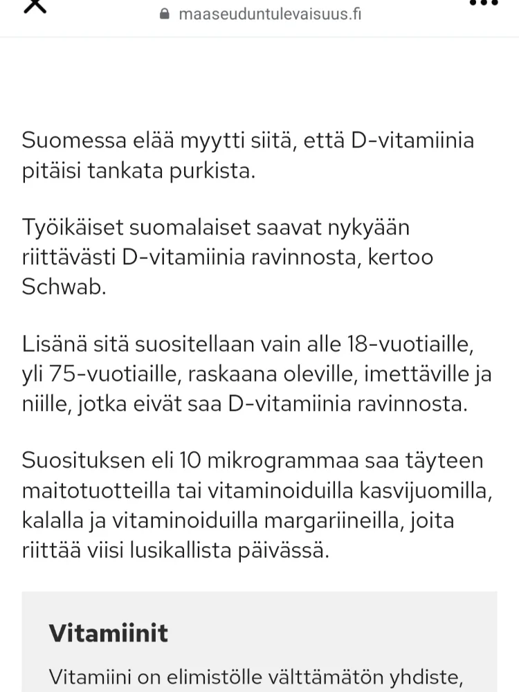 No jo on perkeleSama koskee a-vitamiinia. Ilman sitä d-vitamiini ei toimi ja voi olla haitallista suurina määrinä.