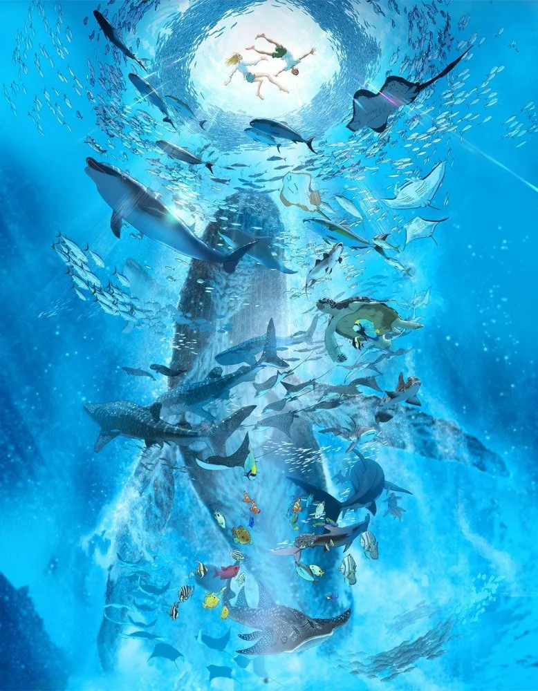 Ruka on nuori tyttö jolta alkaa kesäloma ja kesäloma alkaa kurjasti, kunnes Ruka päätyy vedenalaiseen asemaan, jossa hänen työskentelee. Eräänä päivänä Ruka tapaa Umin eräänlaisten dupongejen kasvattaman pojan joka pystyy hengittämään veden alla ja jolla on myös kykyjä ja yhteyksiä esim valaisiin. Todella monessa animessa on kuten tässä asetelma esim nuori tyttö jonka elämä on kurjaa ja sit tyttö pääseekin johon fantasiamaailmaan pakoon kurjaa elämää. Monissa tuollainen toimii ihan 10 tasoisesti, mutta tästä leffasta ei voisi sanoa samaa tuollaisesta asetelmasta kun puhutaan. Syynä on et sitä ilotonta elämää ja etenkään hahmoja ei pohjusteta oikein mitenkään. Leffa jotenkun vaan alkaa keskeltä kaikkea.