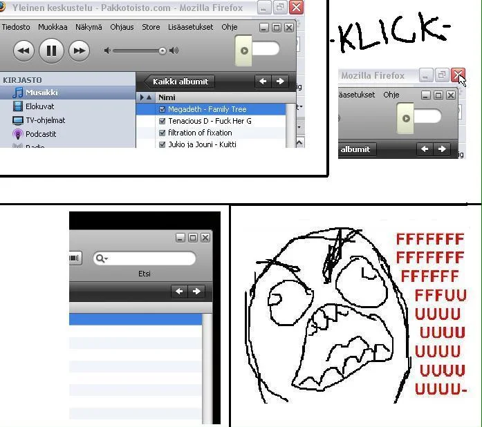 FFFFFUUUUUUUUUUU on aivan loistava netti-ilmiö. Töissä hajoilin kybällä noille :D Olin jo addaamassa tekelettäni postiin, kun tuli FFFFFFFUUUUUUUUUUUUUU - reaktio kun ei oo vippi. :curs:
