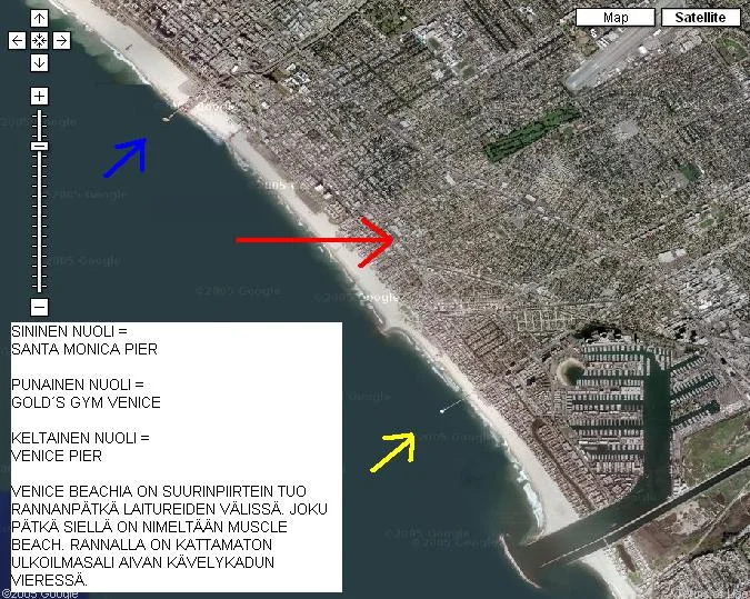 Innostuin ja oli pakko etsiä kuvat maailman kuuluisimmasta kuntosalista. Laitoin niitä varten, jotka eivät paikkaa tunne, vähän nuolia osoittelemaan sinne tänne ja etsin netistä myös pari kuvaa, joita en väitä satelliitin ottamiksi.....