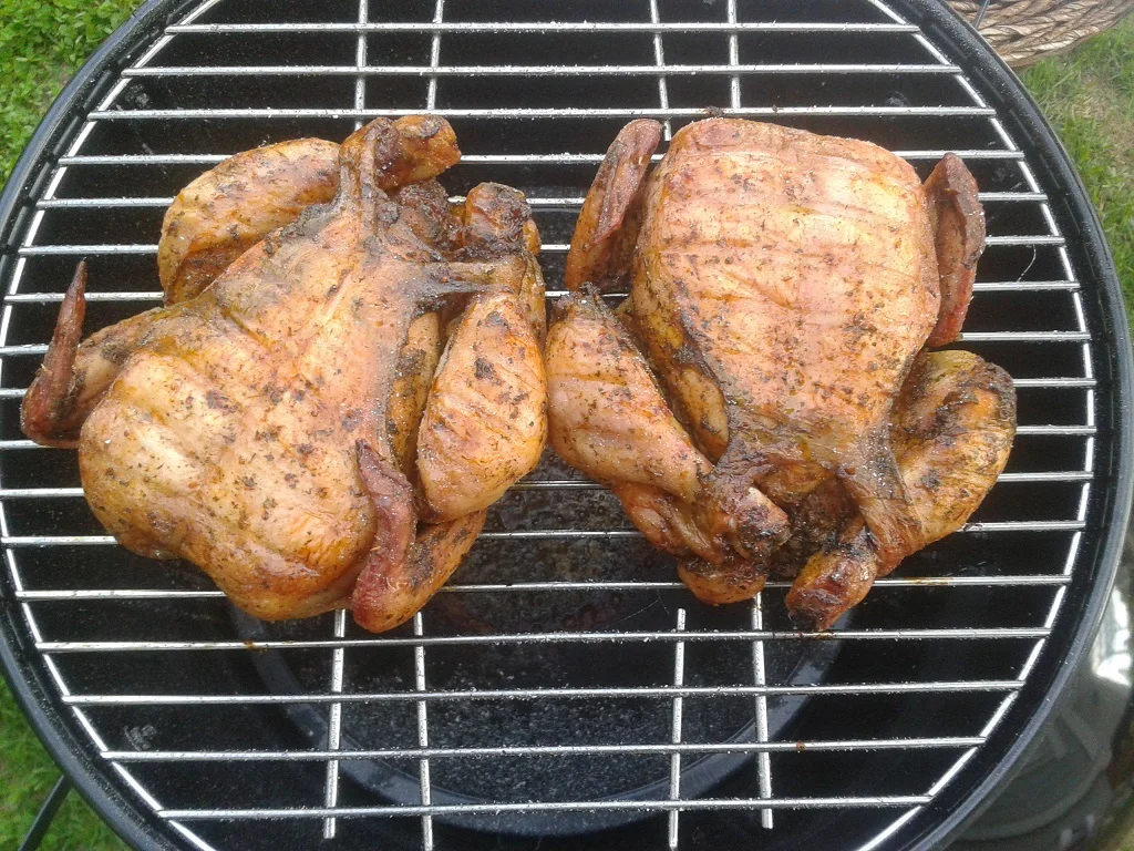 Ensimmäinen "savustus" hiilisavustimella. Pirkan uunibroilerit kyseessä kun ei jaksanut vielä säätää enempää. Kohta maistan....