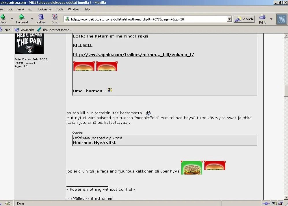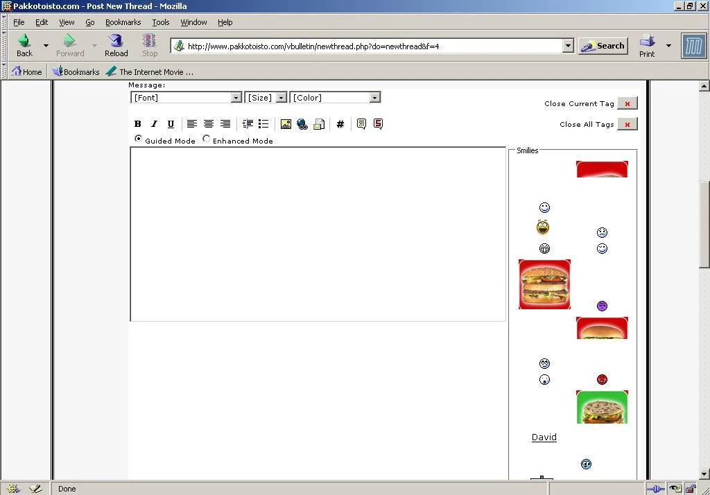 Kävin hesen sivuilta katsomas hamppareiden ravintoarvoja ja nyt osa hymiöistä muuttu hampurilaisiks :hyper: