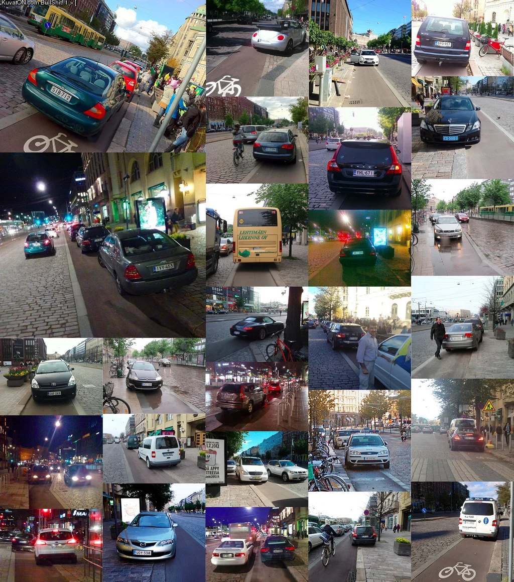 Tässä on hyvä kollaasi, miksi tuo pyörätiellä ajo ei aina oikein meinaa sujua. Ja tässä tuleekin mielenkiintoinen dilemma, missä pitäisi ajaa. Jalkakäytävällä ei saa ajaa, ja autotiellä ei saa ajaa, jos vieressä on pyörätie. Itseasiassa sitä olisi varmaan hyvä kysyä tuolta vikan kuvan poliisilta, että mitä mieltä hän on, miten tästä pitäissä pitäisi edetä, kun itsekin rikot lakia :P