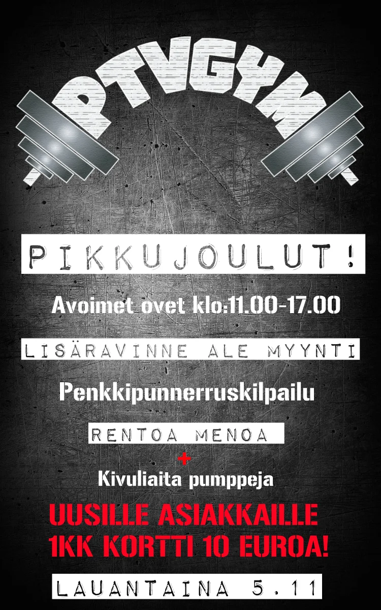 Tänään tuli vihdoin käytyä PTVgymillä kokeilukäynnillä, nolo myöntää että kesti näin pitkään. Kaikki testatut laitteet ja välineet olivat hyviä. Tuettu kulmasoutu, penkkilaite ja pystypunnerrus/viikinkipunnerrus suorastaan järjettömän hyviä. Porukkaa oli paikalla jonkun verran, mutta pienestä tilasta huolimatta ei sali missään kohtaa tuntunut ahtaalta, eikä yhtäkään välinettä joutunut jonottamaan. Tunnelmasta ja salin ulkonäöstä reilusti plussaa, on tuolla vaan täysin eri fiilis kuin Porvoon muilla saleilla.