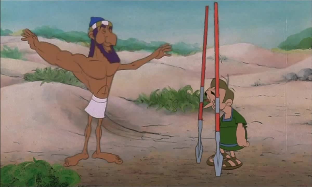Tuli mieleen tämä persialainen keihäänheittäjä Asterixissa:
