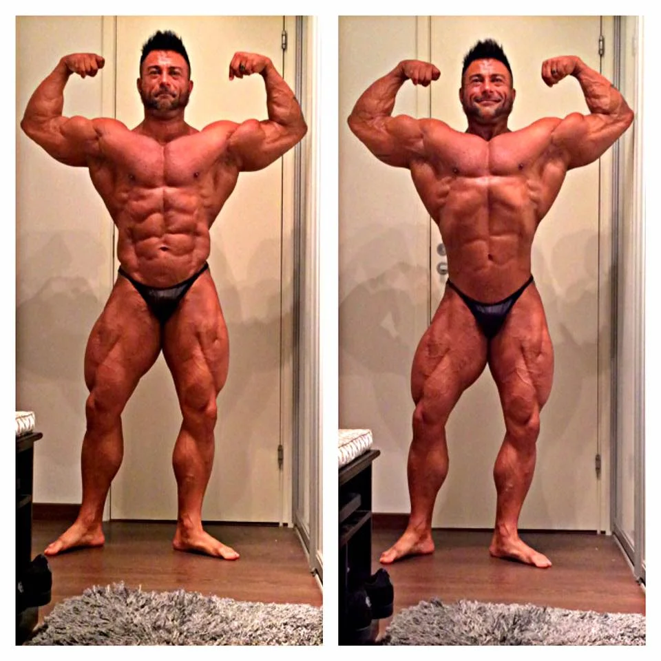 Näinpä. Rakenne tuossa se isoin ongelma on kuten suomalaisilla yleensä. Leveä keskivartalo ja snadi persjalkaisuus näkyvimmät ongelmat joille ei oikein voi tehdä mitään. Kädet jää pliisuiksi kun ojentajat jäljessä. Selkäposet vähän kehittyneet mutta selkä jää jalkojen varjoon pahasti takaposeissa. Massaa on mutta se on vähän väärissä paikoissa.Massaa on kylla riittavasti mutta homma kaatunee yksityiskohtien puutteeseen ja siihen etta keskivartalo on liian paksu joka luo illuusion suhteellisen pienista kasista esim. tuplat edesta posessa. Toisaalta kadet nayttaa aika isoilta rinta sivulta posessa. Vahan hankala lahtea parantamaan tuollaista pakettia.