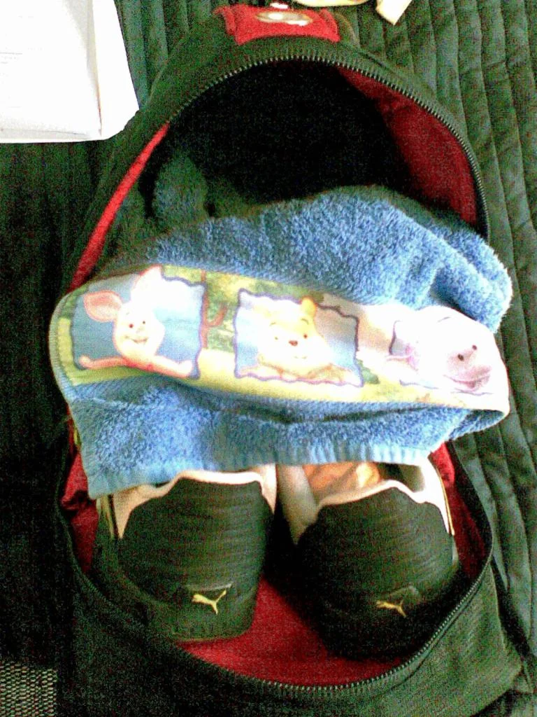 Salille lähdössä. Nalle Puh -pyyhe mukana ja kaikki hyvin :)