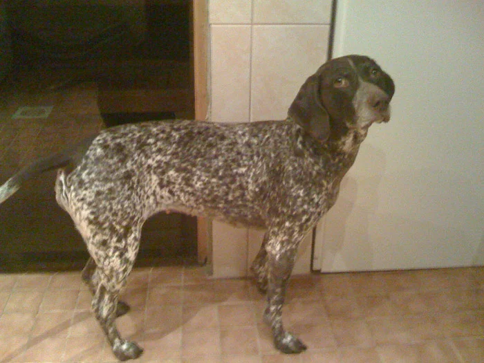 Koiran kanssa oltiin tulossa takapihalta ja se ootteli tassujen kuivausta.