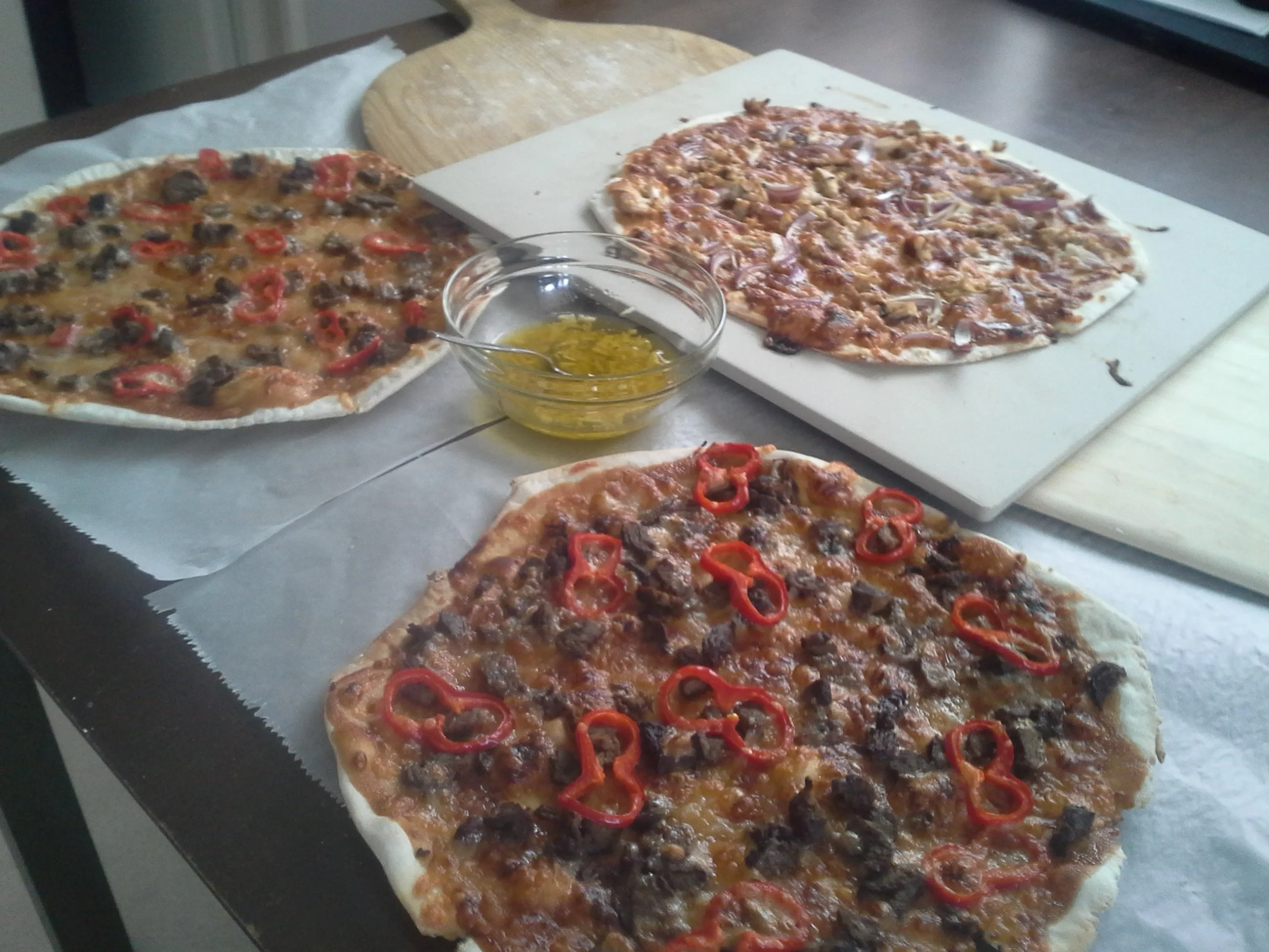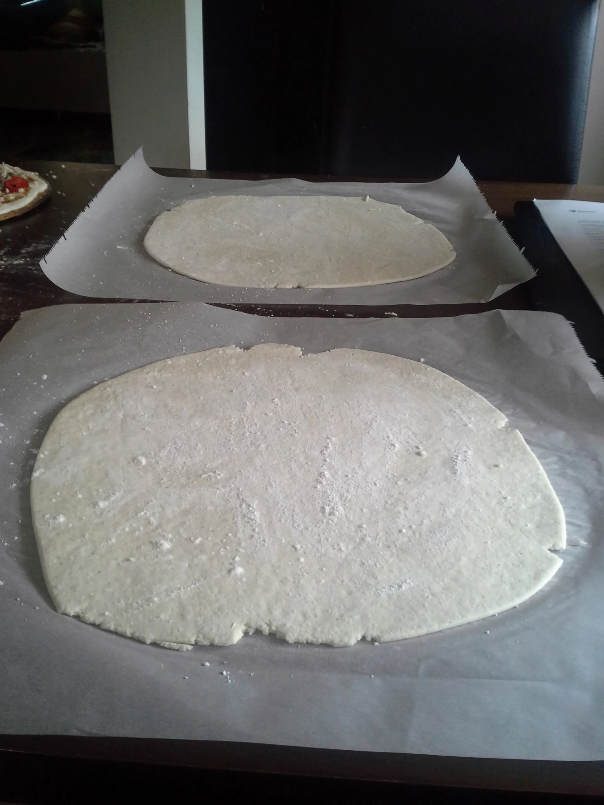 Suoritin kenttätestausta tämän ohjeen mukaisesti http://www.kotikokki.net/reseptit/nayta/303465/Hyvä, ohut pizzapohja/