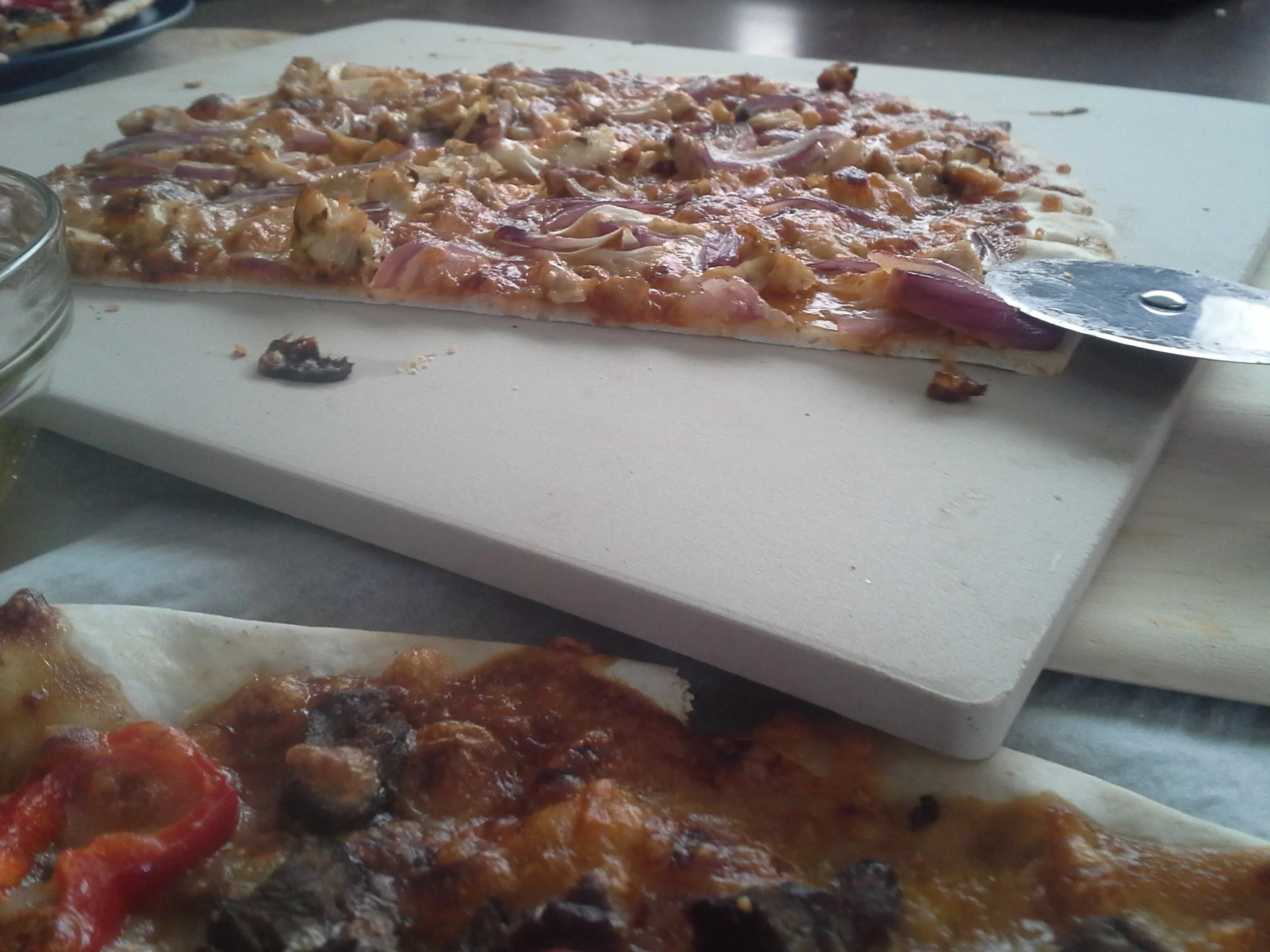 ^ No niin, sen verta jäi pe-la grillailuista ja savustelusta räippeitä jälelle, että nyt oli hyvä sauma testata tuo yhdistelmä gluteeniton pohja + pitsakivi.