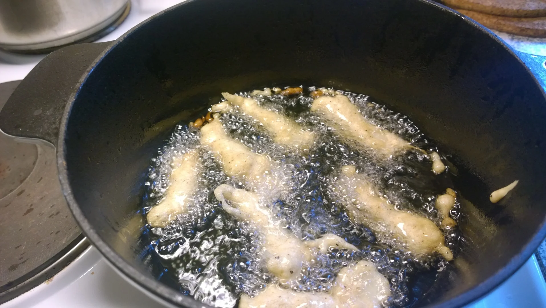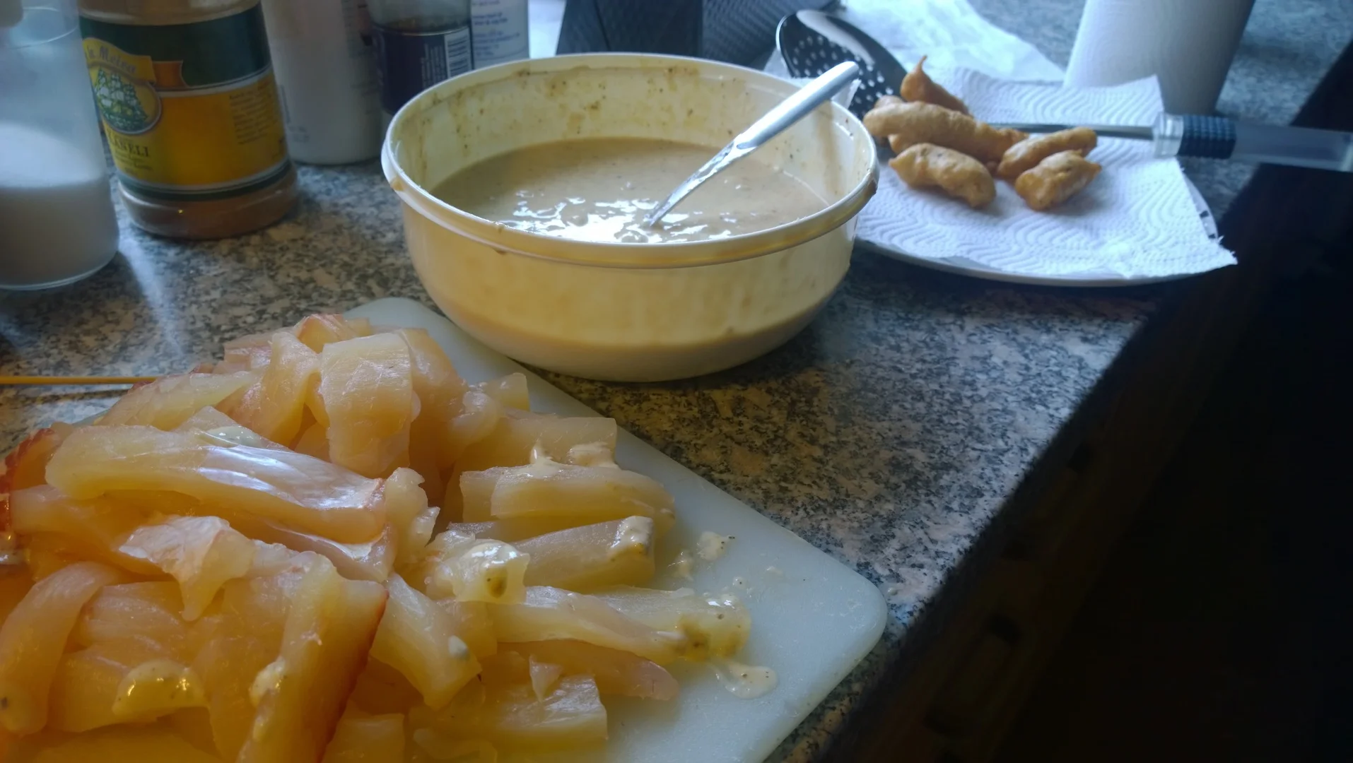 Hauki viritetään ruodottomaksi. Ruodoton hauki palastellaan oman maun mukaan. Mä oon tykännyt ~ranskalaisen kokoisista palasista. Palaset sotketaan reippaasti taikinan sisään. Uppopaistetaan kalanpaloja pienissä erissä, kunnes lopputulos on golden, brown and delicious. Pienemmät palaset on kivoja vaikka dippikastikkeen tai tuoreen sitruunan kanssa.