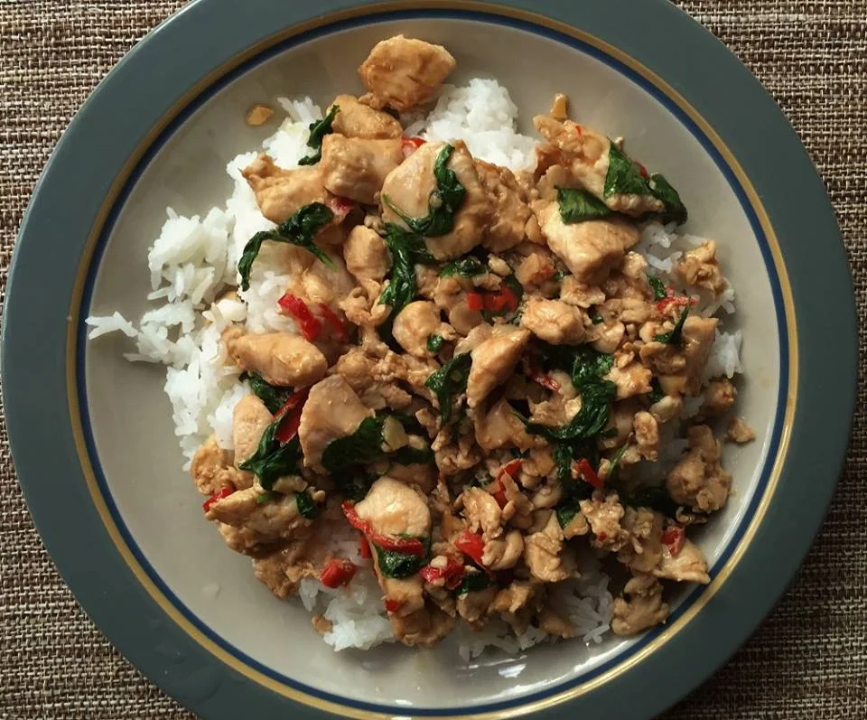 Lomaa odotellessa tuli tehtyä perus Thai street foodia. Kra Phrau Kai, eli basilika kanaa.