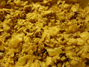 Soossi: purkki tomaattimursaa 500gr, purkki kookosmaitoa 400gr, pari valkosipulin kynttä, reilusti chiliä ja curryä (maun mukaan tieten) ja n. 0.5dl soijaa. kaikki tehosekottimella tasaiseksi sekoitettuna.