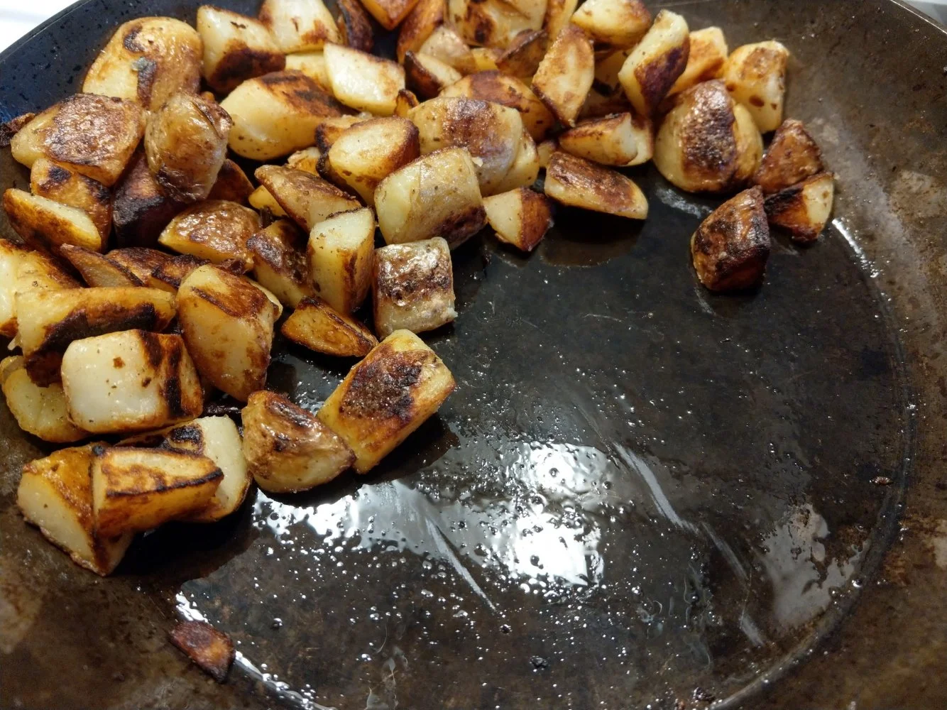 Pari päivää sitten keitettyjä pottuja. Reilusti voita ja lämpö 1-6 asteikolla asetettuna 4.Mikä oli metodi? Veikkaan, että ainakin kohtuu mieto lämpö ja mahdollisimman vähän lastan kanssa lääppimistä?