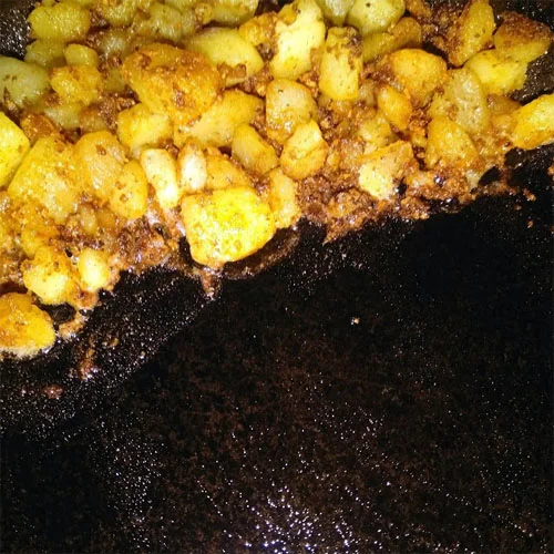 Taisin joskus kans kerrasta oppia perunan paistamisesen. Aina teflonilla.