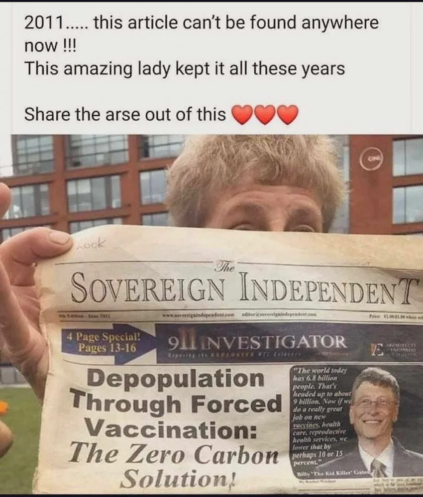 Soverin Independent, vanha irkkulainen salaliittoteorioihin keskittyvä lehti, joka irrottanut tuon Gatesin lauseen ilmeisesti tästä kontekstista: https://www.forbes.com/sites/matthe...-second-coming-of-bill-gates/?sh=2328363513fd