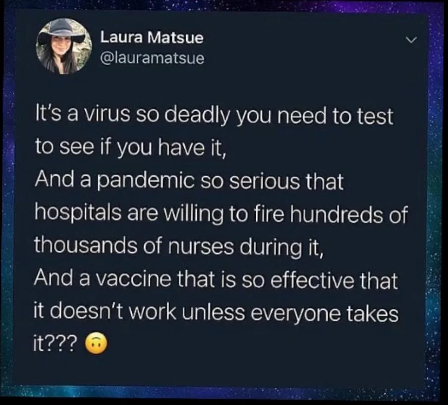 Näinhän ei voi olla joten teholle joutuneita kaksi kertaa rokotettuja täytyy olla huomattavasti enemmän kuin rokottamattomia, jos yksikään heistä on selviytynyt hengissä sieltä tai vielä pahempaa, kahdesti rokotettua ei ole enää otettu edes sairaalaan vaan ovat kuolleet kotona ilman hoitoa.