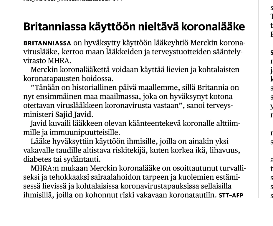 – Rokotekattavuuden pitäisi olla lähempänä 90 prosenttia, jotta pystyisimme pysyvästi elämään tämän epidemian varjossa. Tanskassa oli viime viikolla rokotekattavuus yli 86 prosenttia, ja silti Tanska joutuu miettimään rajoituksia uudelleen, Kiuru sanoo.