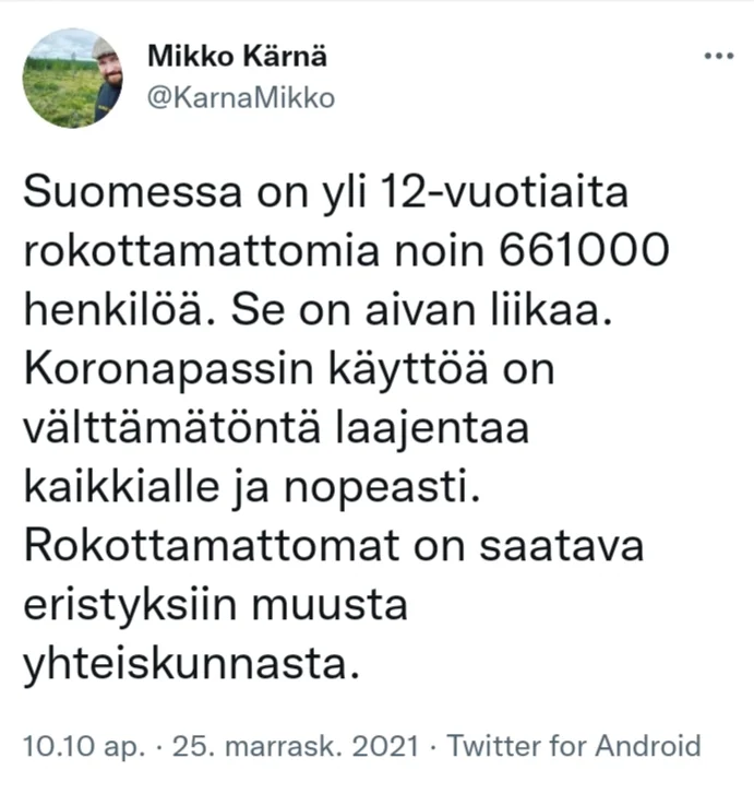 Tilanne koronapotilaiden tehohoidossa on tällä hetkellä rauhallinen. Viime viikolla Uudellamaalla oli viruksen takia teholla neljä ihmistä. Vähäisestä koronapotilasmäärästä huolimatta, mikään ei vieläkään viittaa siihen, että virus olisi heikentynyt. Tilanne saattaa muuttua, jos tartunnat lisääntyvät myös vanhemmassa väestössä ja riskiryhmissä.