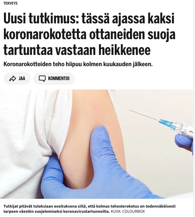 Vasta-aineiden putoaminen ei ole synonyymi suoraan rokotteiden tehoon. Siitä ei voida vetää suoraa johtopäätöstä tehoon.