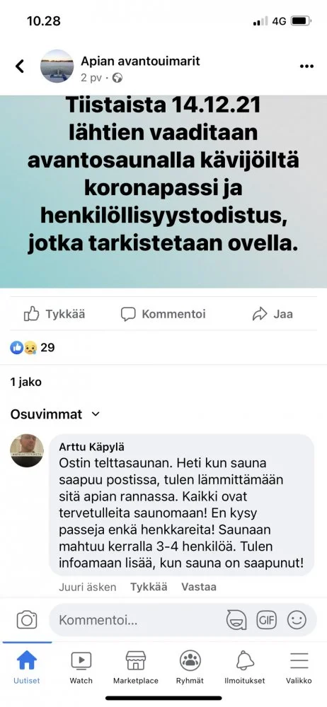 Tämä ei suoraan koronaan liity, mutta tuohon vapauteen ja etuoikeuteen...