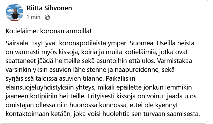 Jos ei kukaan näin tehnyt mutta nyt tekee koronan kanssa, mikä on muuttunut eli miksi tästä asiasta on tullut nyt niin olennainen, että itsensä lisäksi sitä pitää tuputtaa myös muille?