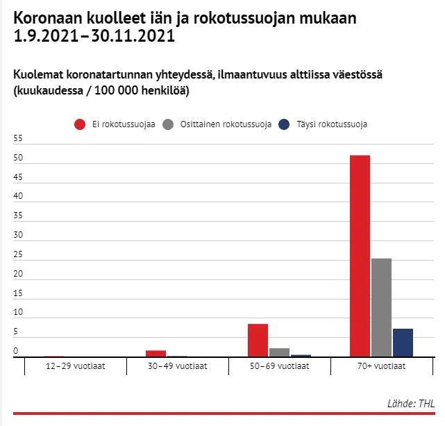 Tuosta näkyy, että piikityksillä ei mitään käytännön merkitystä kuolleisuuteen alle 50-vuotiailla, eikä oikeastaan alle 70-vuotiaillakaan.