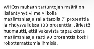 Minä veikkaan että rokottamattomat käy vähemmän testeissä. Vastustavat rokotuksia rajoituksia ja testejä. Eivät sitten lievillä oireilla lähe testiin.