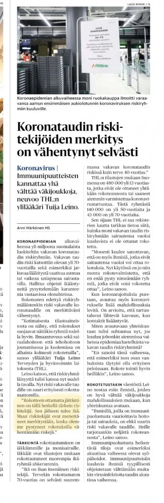 Omassa lähipiirissä 4 tapausta joissa veritulppa pian rokotteen jäkeen. Yksi johti kuolemaan.