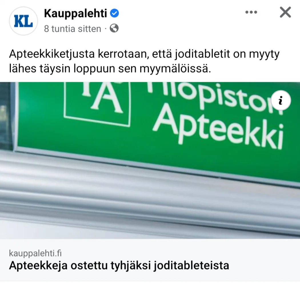Eilen yritin selittää yhdelle kaverille tuota, ja siis oikein korostetun rauhallisesti yritinkin, selittää, sen miten olematon mahdollisuus on saada vakava korona, tai kuolla siihen vs. rokotehaitat alle seitsemänkymppisillä perusterveillä normipainoisilla... Vastaus oli oli jotain tämmöistä "lopeta nyt tommoset hörhöjutut, pelkkiä valheita" kyseessä siis korkeasti koulutettu, muuten hyvin älykäs kaveri. Luovutin, en jaksanut pilata iltaani.Kaikki sen saa ku ei kellää ole tätä tautia vastaan immuniteettia.. Eiku vai oliks se et flunssat suojaa flunssalta ja olikin se oma immuunipuolustus toisilla niin hyvä ettei räkätautia saa. Mieti jos nyt haet kaikki piikit niin altistat ittes rokotehaitoille. Eikä siinä vielä kaikki! Immuunipuolustuksen kyykkäämisen takia voit saada myös sen koronan joka ei nyt tartu. Aivan huippu diili! Varaa aikasi rokottautumiseen nyt!