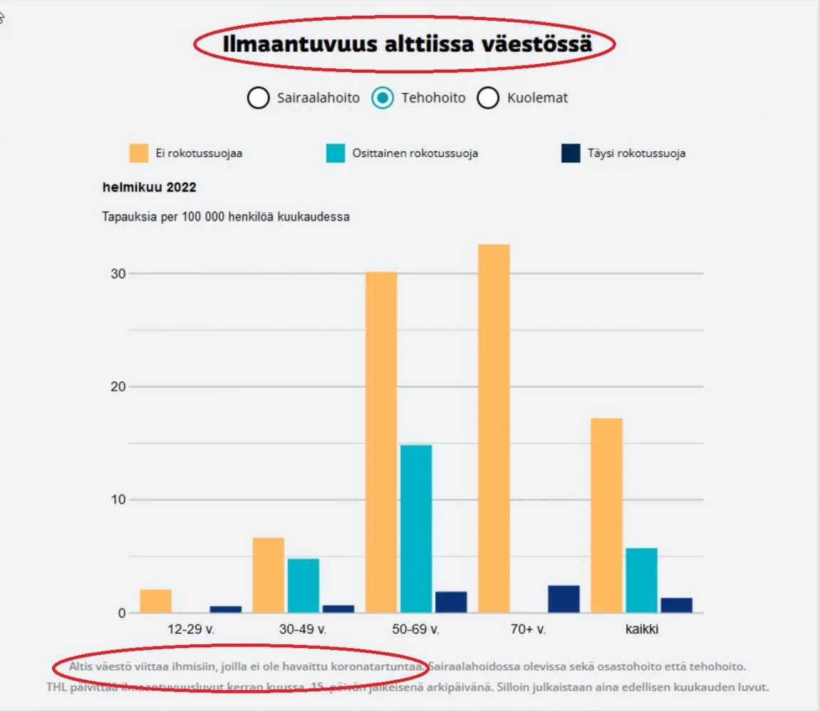 Huom. 2020-2021 aikana koronan sairasti (virallisesti testillä varmistetusti) vain vajaa 5% Suomen väestöstä. 2021 aikana rokotettiin yli 80% väestöstä.