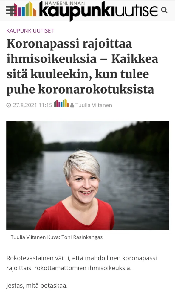 Rokotevastainen väitti, että mahdollinen koronapassi rajoittaisi rokottamattomien ihmisoikeuksia.www.hameensanomat.fi