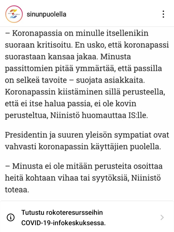 Ps. Katoin tänään töissä hoomoilasena, kun yks kaveri oli toimistolla koko päivän ffp naamio päällä. Selkeästi rakkaudesta lajiin. Edusti noin promillea henkilökunnasta. Aika mukavasti on meillä porukka päästänyt irti naamaripsykoosista, onneks.