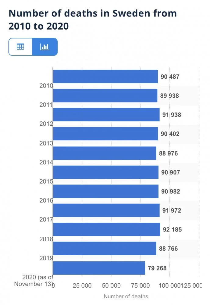 Näitä on aika tyhmä verrata kun vuodet on erilaisia ja tietysti rajoitustoimet rajoittaa tehokkaasti myös muita sairauksia.Tegnell saanut ruotsalaisten kuolleisuuden laskemaan taulukoiden mukaan...