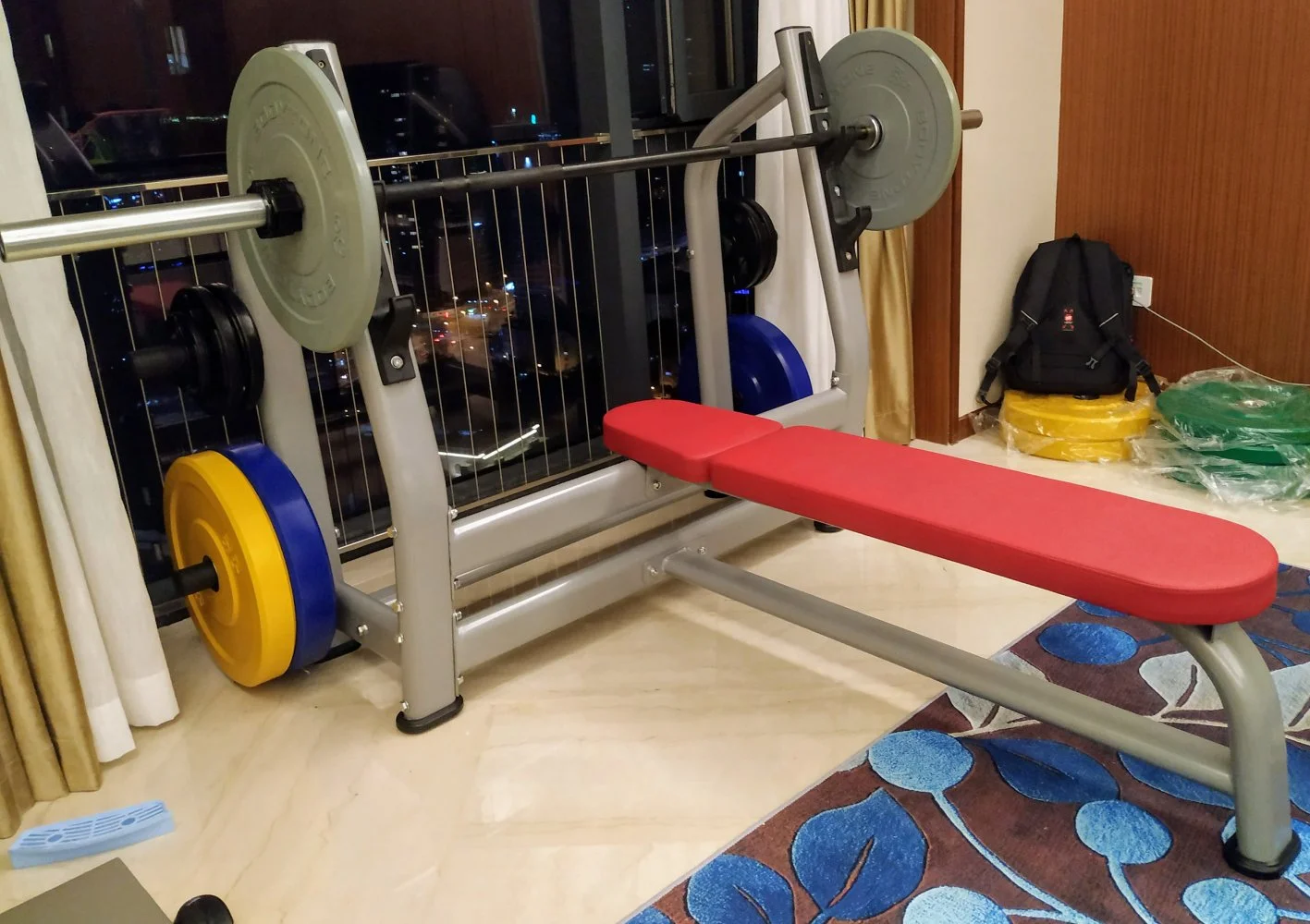 Tuli pitkästä aikaa päivitetty kotisalia, tilasin pari uutta tankoa ja etukyykkyhaarniskan + vähän lisää levyjä, kiinteitä käsipainoja, kumilaattoja ja tankotelineen.
