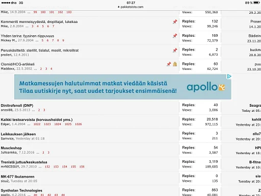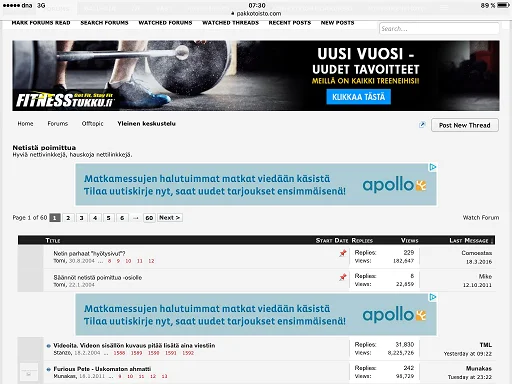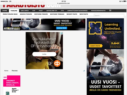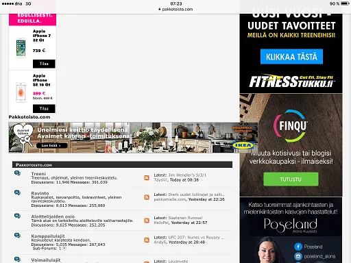 Tässä työkoneella selaillessa ei ole mitään kitistävää. Ongelma tulee silloin, kun kuuntelet luurilla musiikkia ja avaat keskusteluketjun, niin automaattisesti avautuva mainos katkaisee Spotifyn. Tuosta syystä tulee selattua kännykällä foorumia kohtuullisen vähän.